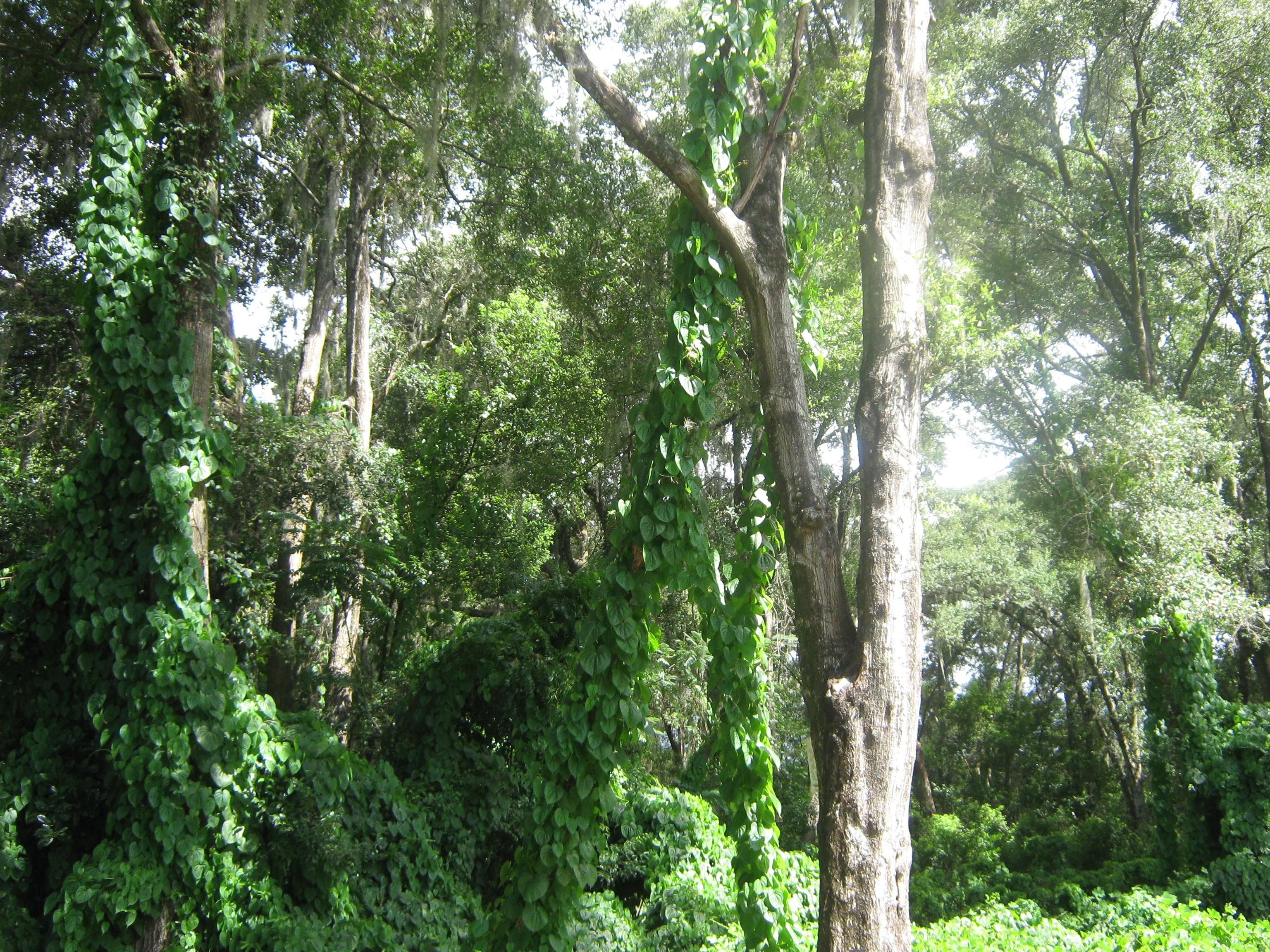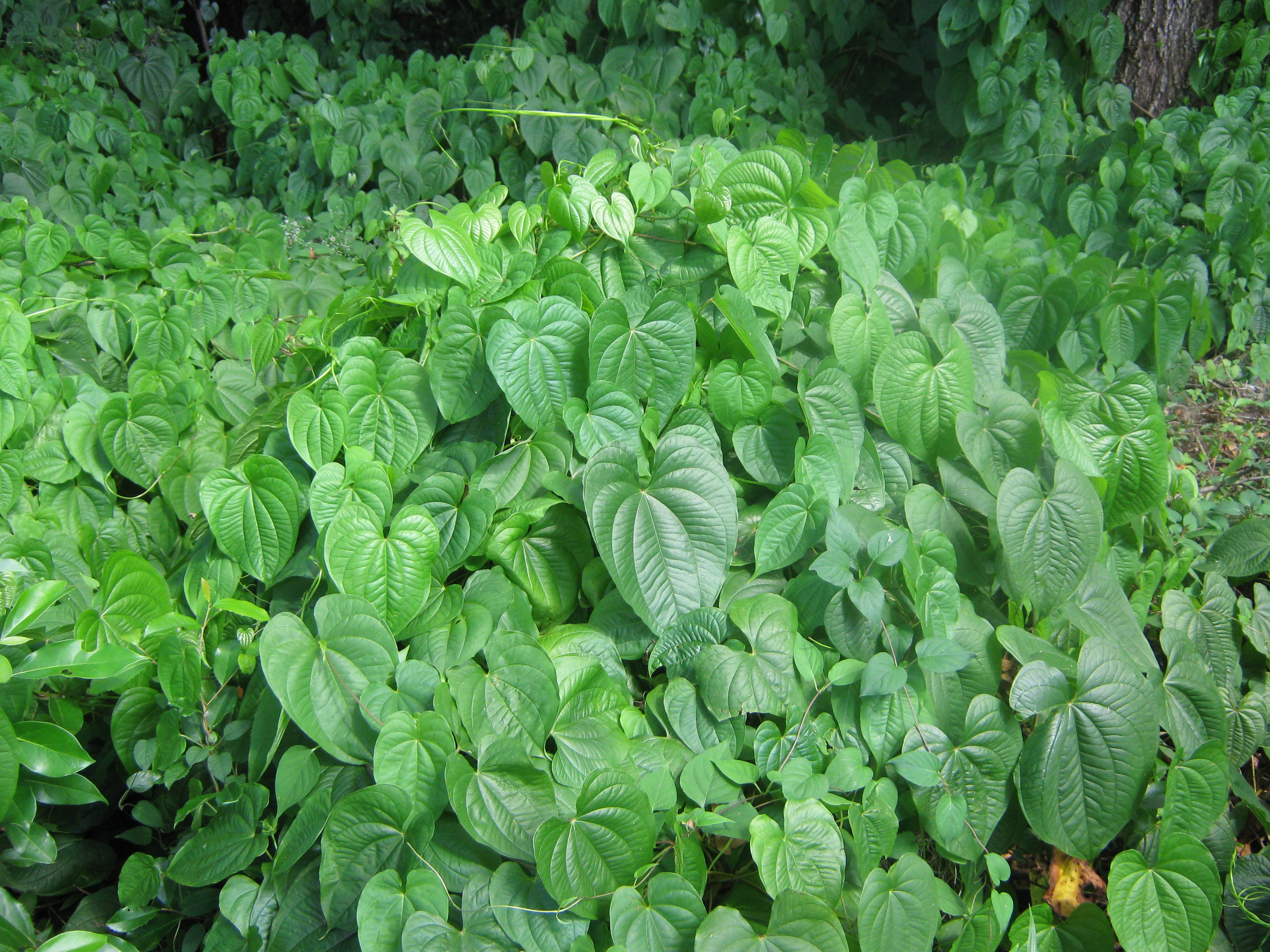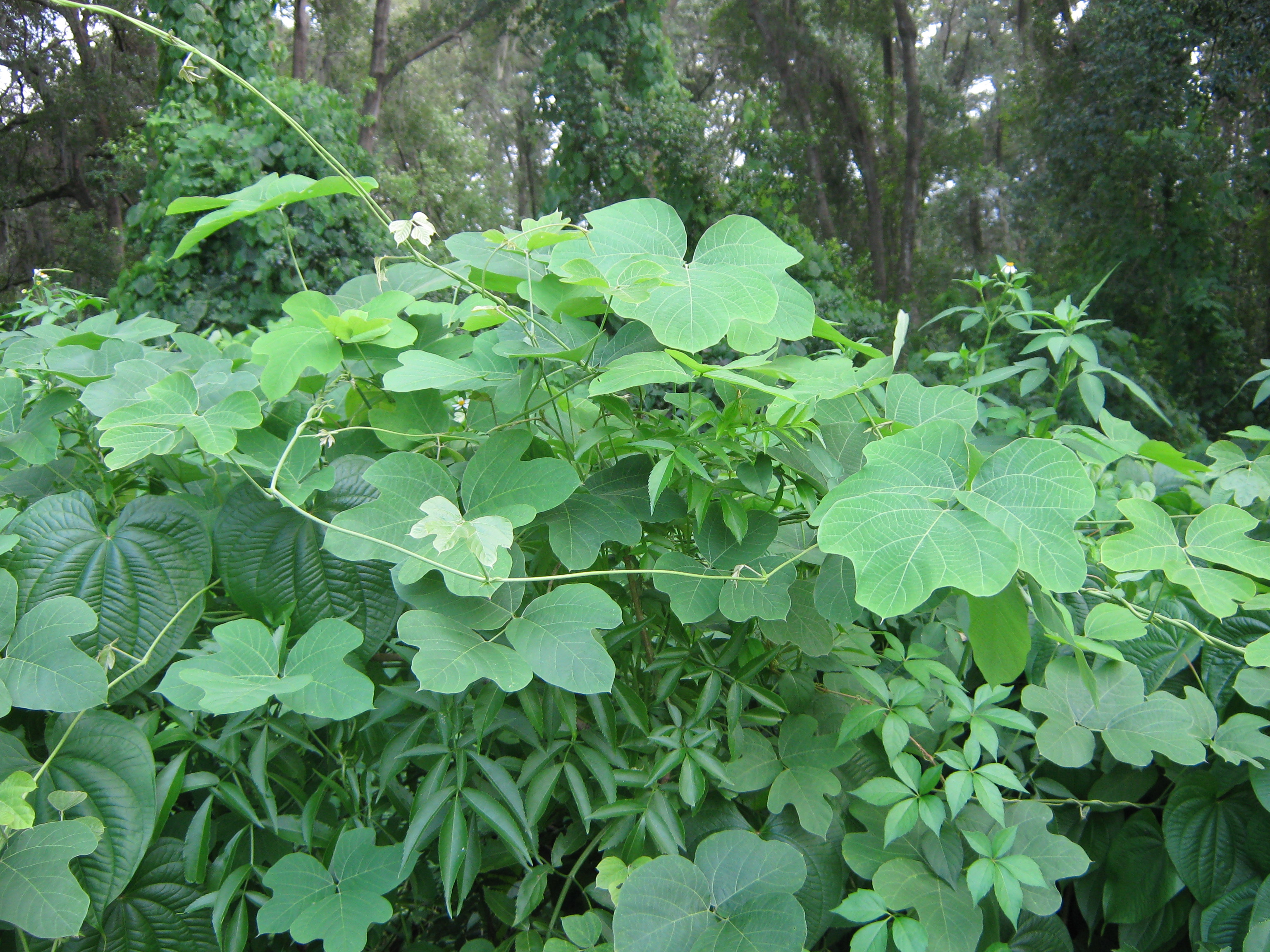 - Dense mat of Dioscorea bulbifera (Air potato)